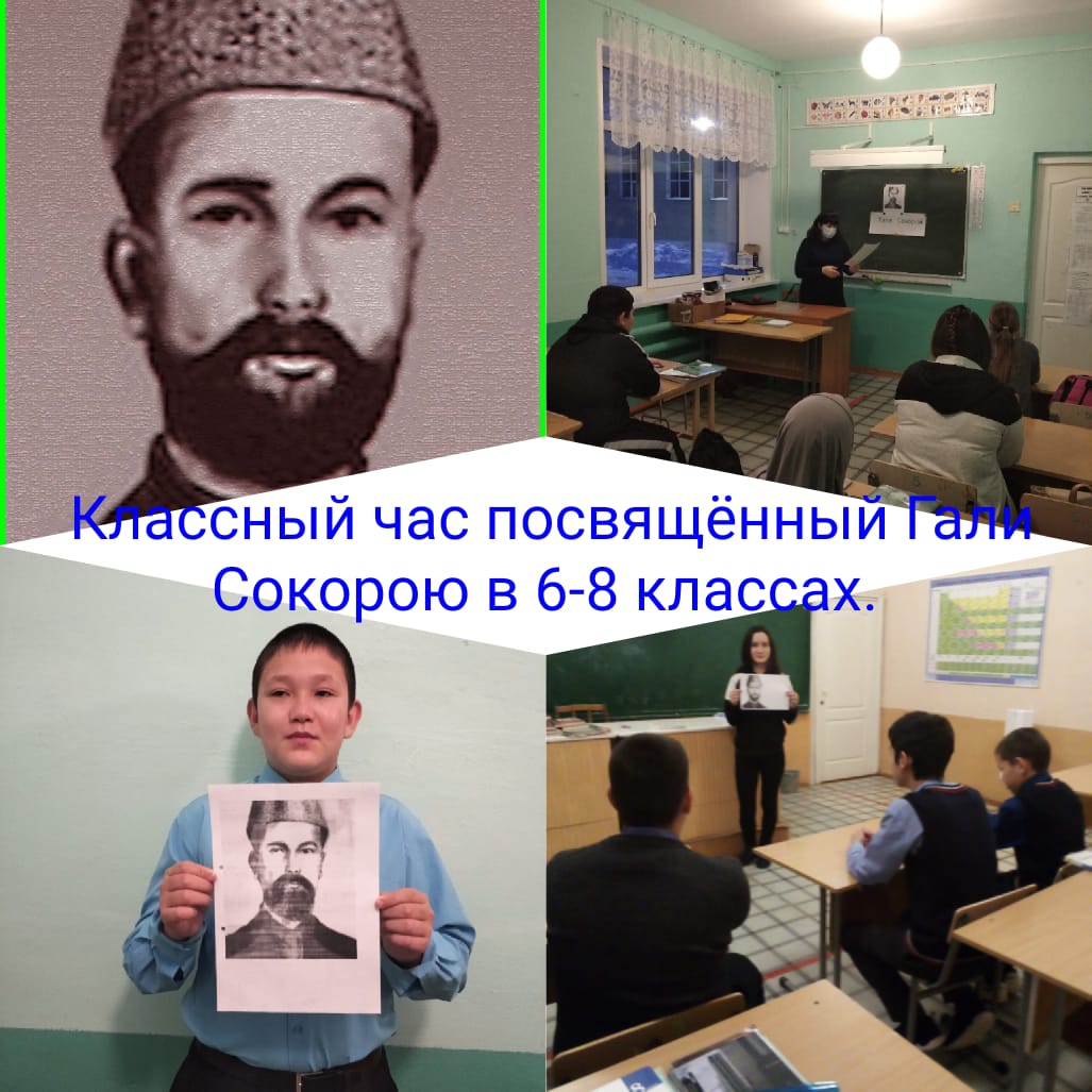 В школе провели классные часы посвященные ко 195-летии со дня рождения Гали Сокороя. Гали́Сокоро́йили Гали́Чокры́й, (башк.Ғәли Соҡорой,настоящее имя–Мухаметгали́Габделсали́ховичКии́ков(башк.Мөхәмәтғәли Ғәбделсәлих улы Кейеков), башкирский поэт-суфий, просветитель.