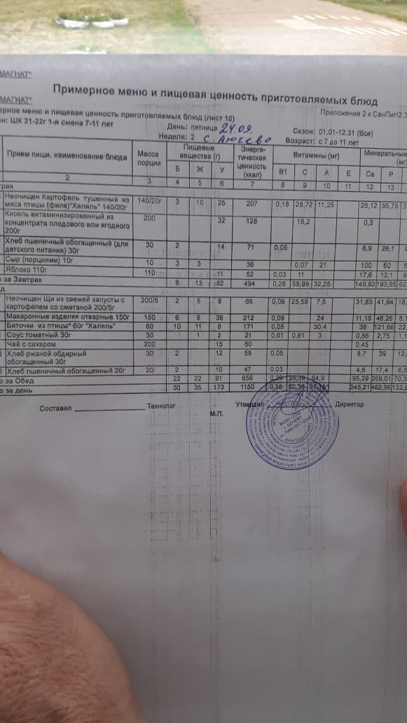Паспорт пищеблока