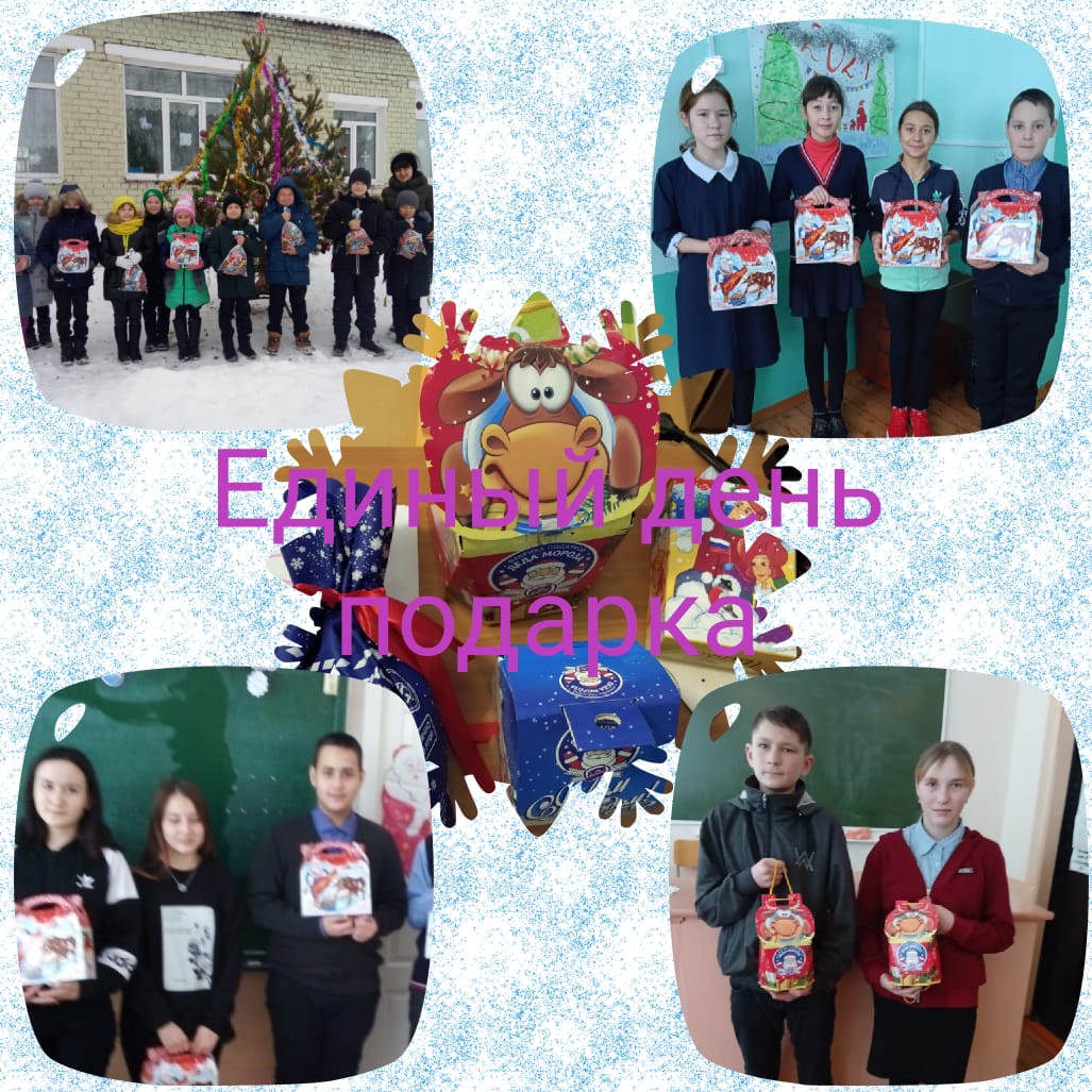 25 декабря в школе прошел Единый день подарков. Все ребята получили новогодние вкусные подарки. За это нужно сказать "спасибо" нашим родителям.